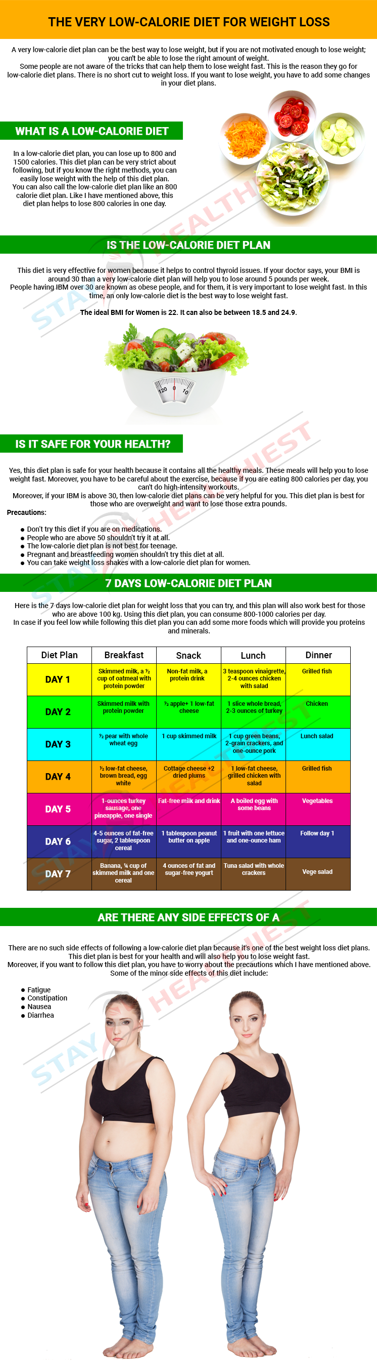 There are no such side effects of following a low-calorie diet plan because it’s one of the best weight loss diet plans. This diet plan is best for your health and will also help you to lose weight fast.
