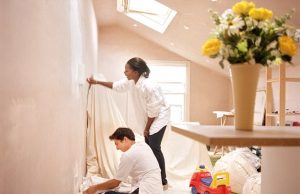 A179C7 young couple decorating their new flat